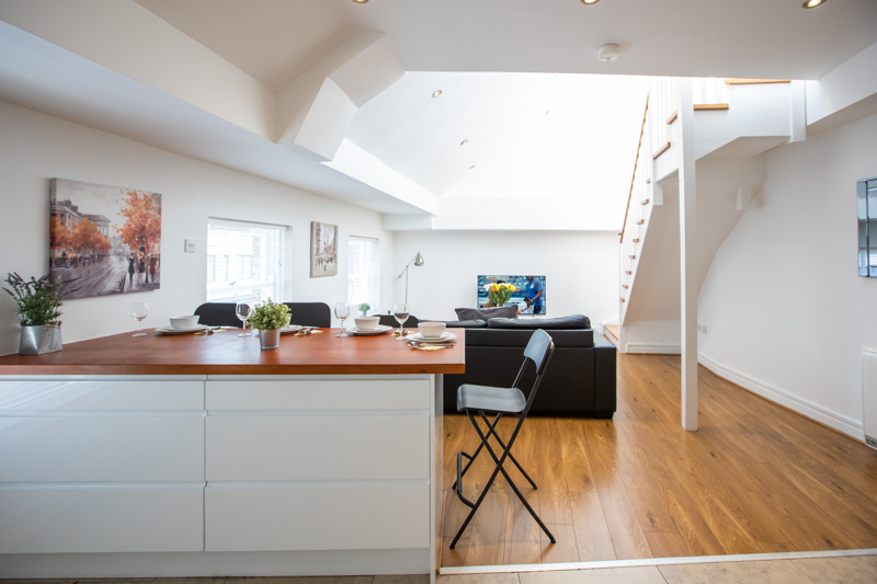 Adjacent to the living room is a fully equipped kitchenette, complete with modern appliances and all the essentials you need to whip up delicious meals during your stay. Whether you’re craving a hearty Irish breakfast or a quick snack before heading out, you’ll find everything you need right at your fingertips.